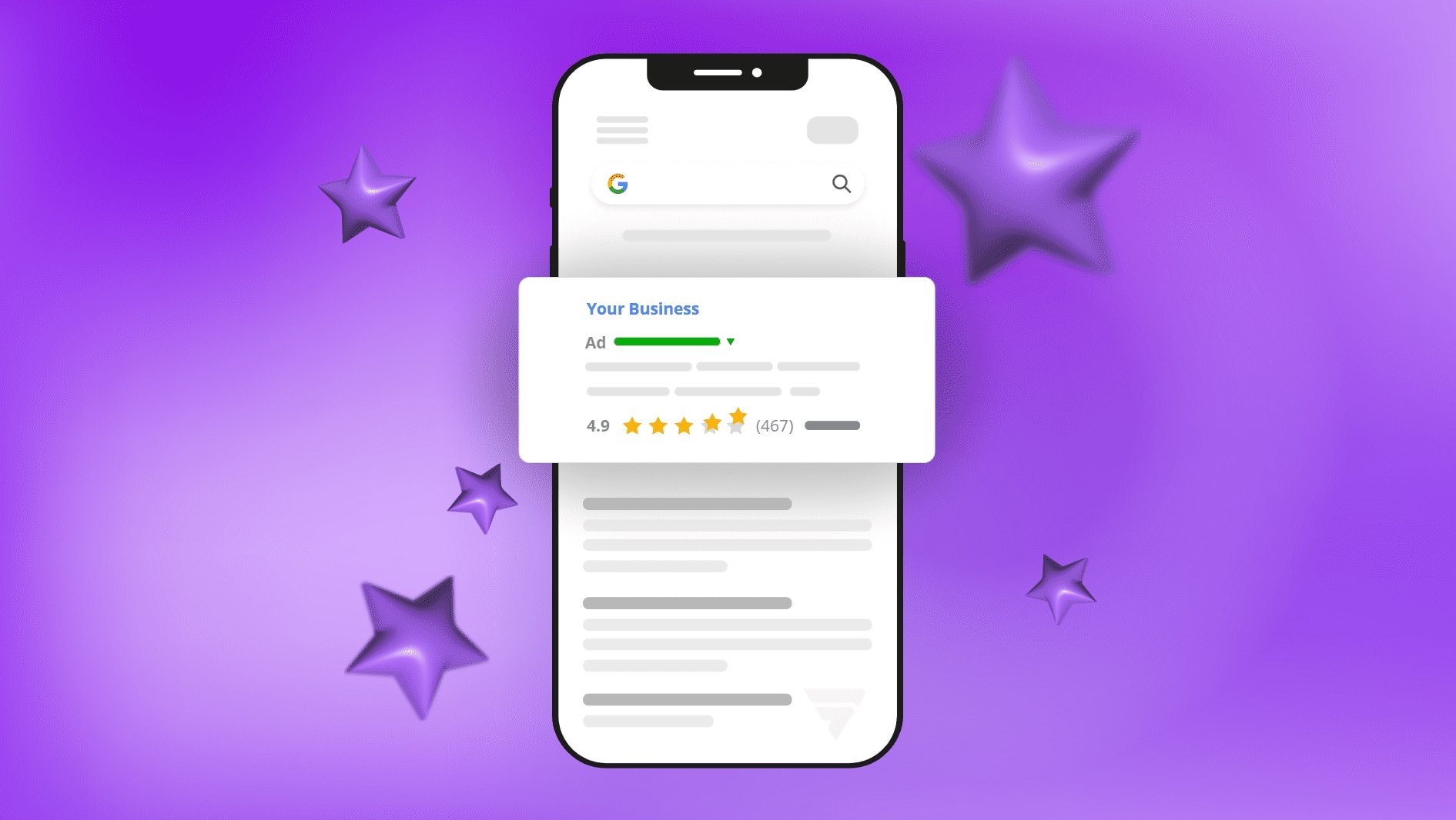 Google рідко показує зірочки в Search Ads, частіше в Display Ads (GDN — Global Delivery Network). Для показу там у вас має бути понад 100 відгуків із рейтингом вище 3,5 у середньому.